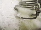 4が写真のようにすくったらおじぎする程度の固さになればOKです。※固く立てすぎないように気をつけます※
