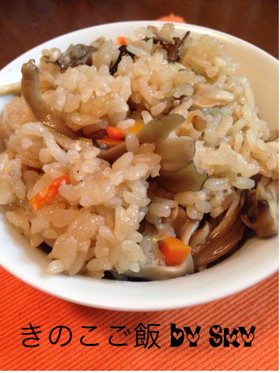 ①に②の人参と④の具と、人肌に冷めた⑤の汁2cup(足らなかったら水を加える)、昆布を加えて炊飯する。
