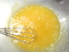卵、アーモンドパウダーを加え、ゴムべラにかえて、混ぜ合せる。滑らかになってきたらラム酒も入れ混ぜる。