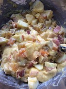 卵を溶き、砂糖を加えて写真くらいに混ぜる。粉とBPを振るい混ぜたらゴムベラに持ち替える。