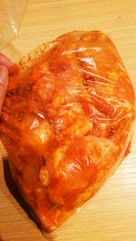 しっかり混ぜて揉み込み冷蔵庫に入れて漬け込んでおきます(つけ込む時間が長いほど味が染み込むので早目に漬け込んで下さいね)