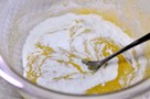耐熱ボウルで、☆を混ぜたら、米粉を加えて練り合わせます。♥の約150ccも混ぜレンジの低温設定(牛乳50℃)で30秒。