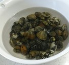 ボウルにあさり、水、塩を加えて約30分置き、砂抜きをします。