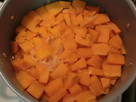 かぼちゃは皮を剥いて火が通りやすいように小さ目に切る。