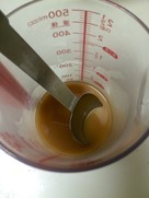 弱火にし、片栗粉が沈殿している場合はよく混ぜ、調味料を回し入れる。