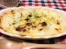 ホワイトソースとチーズをかけ、オーブントースターで10分焼く。