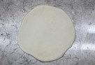 生地を取り出して6等分にし、麺棒を使って直径12cmくらいの円形に伸ばす。端のほうを薄くする。