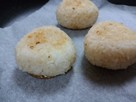 フライパンにクッキングシートを敷きおにぎりをのせて強めな弱火で焦げ目が付くまで焼きます。