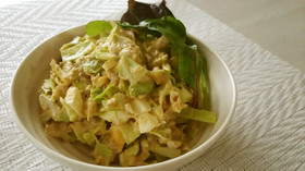 キャベツ、ゆでたまごは粗くみじん切りに切る。ツナは油又は汁を絞る