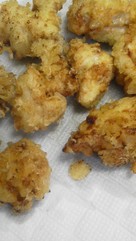 天ぷら粉と水を合わせた天ぷら液に4をつけて、分量外の油でからっと揚げる。