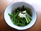 袋のまま、袋に穴を開けてレンジでチン(600W約1分)した中華麺を加えてほぐしながら炒め、ニラを加えて炒め合わせます。