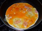 チーズを入れたら、すぐに卵を割り入れて、時々かき混ぜながら半熟になるまで焼きます。