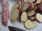 サツマイモは3mmくらいの暑さに切る。ベーコンは1cm幅に切っておく。●を混ぜておく。