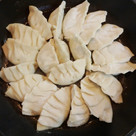 小麦粉を水で溶いたものをフライパンの中の餃子が半分ほど浸るくらい入れ、ふたをして中火で5分ほど蒸し焼きにする