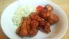 薄力粉と片粉を合わせ、鶏肉をビニール袋から取り出してまぶす。