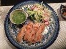食べやすい大きさに切って、お皿に盛り付け、塩ダレをかけて出来上がり。