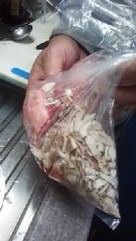 ビニールに肉を入れて、漬けこみ液も入れて、外から手稲に門で、まんべんなく液が回るようにします。