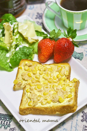 シーザーサラダなので、トーストはマヨネーズがポイントなコーンツナトーストです