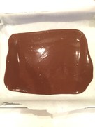 溶かしたミルクチョコレートをバットに全部流し入れる。スプーンの裏などで広げる。テーブルに数回打ち付けて平らにする。