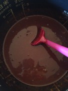 炊飯器にチョコレートを入れスイッチON。ヘラでかき混ぜチョコを溶かします。