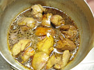 酒と赤ワインを加えてアルコール分を飛ばし、醤油と砂糖も加えて5分ほど煮る。