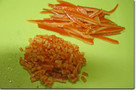 セミドライくらいの状態で、1/2量は細く切り、残りは細かく刻む。カットしたこの段階ではまだかなり水分が多い。
