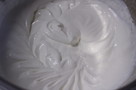 こんな感じになります。とろっとしたクリーム。これ以上かたくすると、後の工程で更にかたくなっていくので注意。