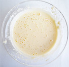 ふるった薄力粉、ベーキングパウダーを加えて、ゴムベラ等で滑らかになるまで混ぜます。