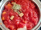 トマト缶、タイム、コショウ、コンソメを加えて1時間ほど弱火でじっくり煮込めば出来上がりだす。