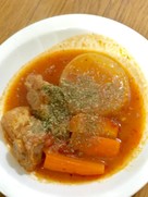 大根と言えば和風ダシを利かせての煮込みが定番だが、洋風のダシで煮込んでもいけました。