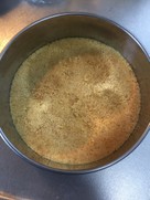 型の上に、バターと混ぜたクラッカーを入れ、スプーンなどで型の下にしっかりと敷きつめて固めていく。