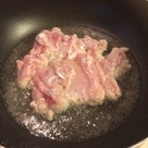 フライパンに1センチほど油を注ぎ、鶏もも肉に片栗粉をまぶし揚げ焼きにする♪皮目を下にして入れ4〜5分揚げ焼きにする♪