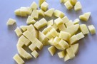 じゃがいもの皮をむき、1㎝角ぐらいに切る。柔らかく茹でてざるにあげる。
