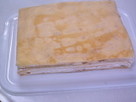 ↑こんな感じに焼けたら出来上がりコレをお好きな枚数焼きます。焼いたクレープはクッキングペーパーを敷重ねます。