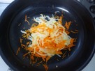 熱したフライパンにバターを入れて人参を炒めます。色が変わってきたら玉ねぎを入れて炒めます。