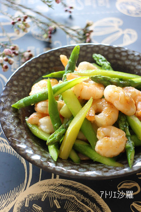 海老とアスパラガスを使って、塩味のあっさりした1品が作りたくて考えました。