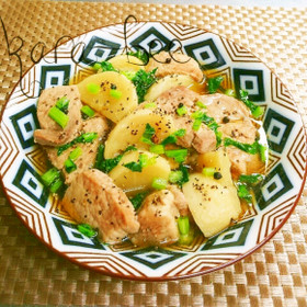 豚肉は1・5cm程の厚みに切り塩コショウをふり、油をひいたフライパンで焼く。かぶの白い部分は皮をむいて串切りにする。
