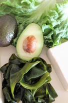 器にレタスをしき、②の豆腐とわかめとアボカドをのせて、ヤンニョムを回しかけると出来上がり。