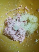 1にねばりがでてきたら、みじん切りにした玉ねぎを加えて更によくこねてね♪