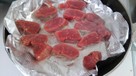 フライパンにサラダ油(写真はフライパン用ホイル使用です)をひいて熱し、豚ヒレ肉を焼く。