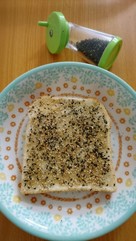 食パンに全体にゴマ油をぬり、ゴマを上からかける。ゴマすり器があればそれを使い全体にかけると香りがいい。