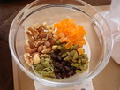 洗い物を少なくしたくてビニール袋を使用しています。ボールとヘラだけなら後片付けも楽チンです♫ いつもはナッツ類も袋に直接入れて量りながら用意しています。 このレシピの生い立ち