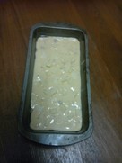 パウンド型に油をひいて、この型に4を流し込む。オーブンは190度で余熱しておく。