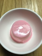 赤寒天を使ったのでピンク色! ヨーグルトくらいの柔らかめの出来上がりです。