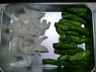 玉ねぎはくし型に切り、しし唐はヘタの部分を切り落としておく。