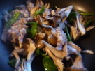 舞茸は小房に分け、ピーマンは種を取って乱切りにします。