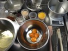 まず、卵黄を溶きほぐしたら、砂糖の中から大さじ1位を入れよく擦り混ぜる。(★泡立てる必要はありません)