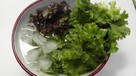 レタスは冷水につけてパリッとさせます。リンゴは薄くきります。鶏もも肉は塩、コショウをして10分程度おきます。