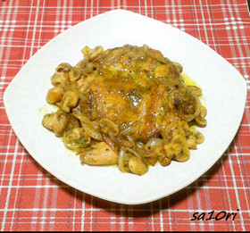 玉ねぎとマッシュルームはスライスします。鶏肉は脂と筋を取って切り目を入れ、平らにして塩・ブラックペッパーをふります。