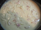 4の上から3のホワイトソースをかける。その上にチーズを乗せ、最後にお好みでパン粉を少量かける。